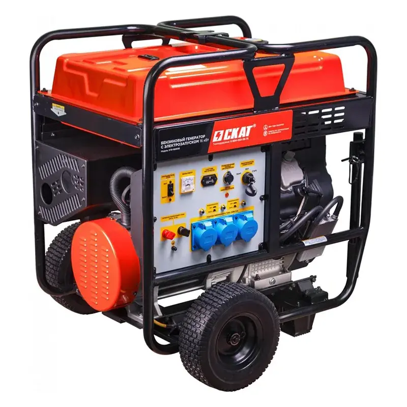 Однофазный бензиновый генератор СКАТ УГБ-16000Е мощностью 16 кВт обеспечит электроэнергией офис, коттедж, фермерское хозяйство, магазин, строительную площадку, производственный цех.