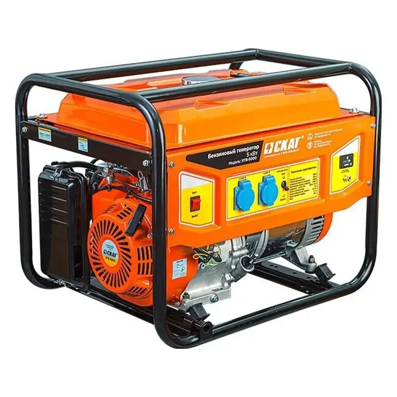 Бензиновый генератор СКАТ УГБ-5000 мощностью 5 кВт представляет собой мобильное оборудование как для бытового, так и для профессионального использования. Служит источником питания различных приборов, когда нет возможности подключится к электросети.