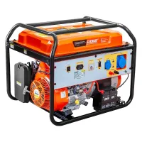 Бензиновый генератор оснащен четырехтактным одноцилиндровым двигателем мощностью 12,5 кВт объемом 550 см3. Мини электростанция с номинальной выходной мощностью 9,2 кВт вырабатывает однофазный электрический ток напряжением 220 В частотой 50 Гц.