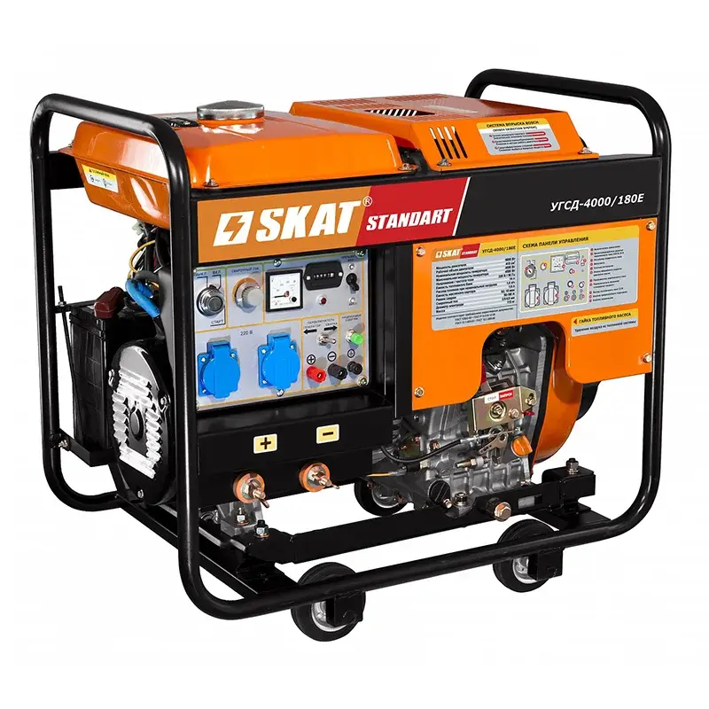 Дизельный сварочный генератор СКАТ УГСД-4000/180Е мощностью 4 кВт подойдет строителям, работникам артелей и карьеров, где работает тяжелая гусеничная техника, станет отличным помощником для монтажных или ремонтных бригад.