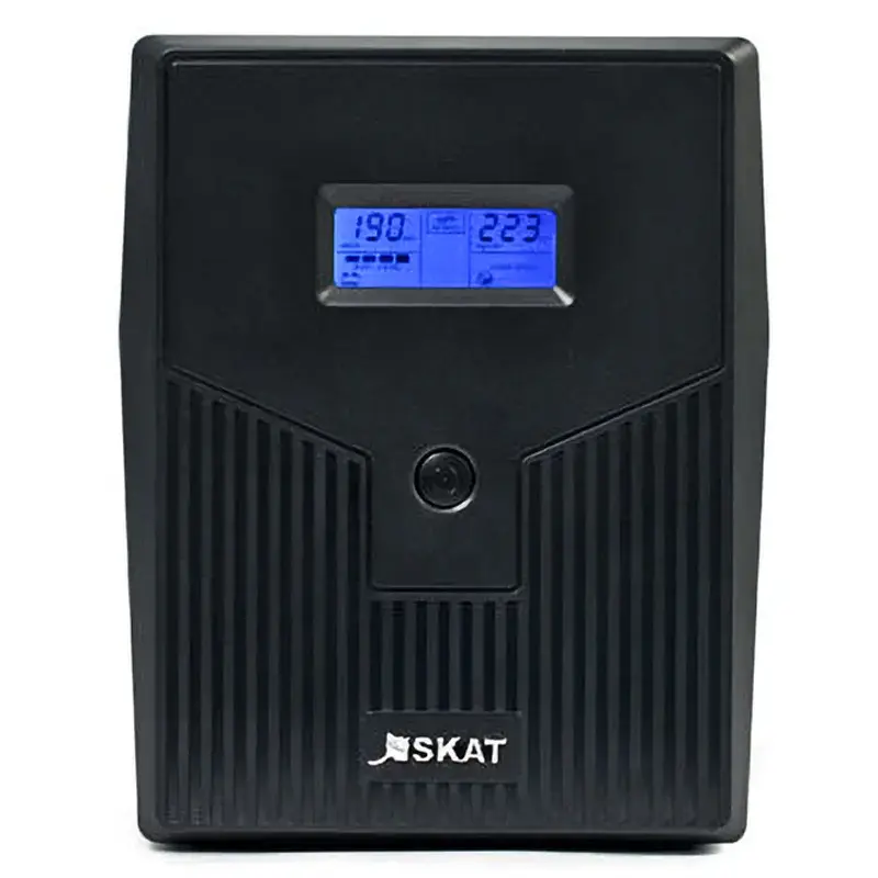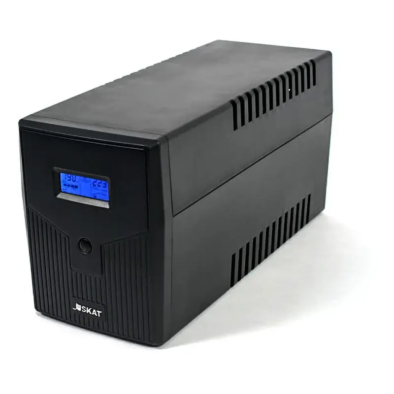 При отключении и последующем восстановлении центрального электроснабжения источник SKAT-UPS 2000/1200 за доли секунды выполняет автоматический переход из основного в автономный режим и обратно. Устройство обеспечивает фильтрацию помех, а также защиту от высоковольтных импульсов, скачков напряжения, короткого замыкания и перегрузки. Коммуникационный порт для подключения к компьютеру позволяет корректно завершить работу операционных систем и выполнить безопасное выключение оборудования.