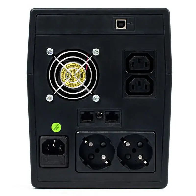 ИБП с аккумулятором оснащен ЖК-дисплеем, на котором отображаются значения уровней выходного и входного напряжения, заряда аккумуляторной батареи и нагрузки. Наглядные пиктограммы состояния устройства и его режимов работы обеспечивают удобство контроля. При переходе к питанию от батарей, неисправности или низком заряде выдаются звуковые сигналы. Если ИПБ, подключенный к электросети, выключить, устройство перейдет в режим ожидания, в котором будут заряжаться аккумуляторы. Время переключения на работу от батареи составляет 2–6 мс.