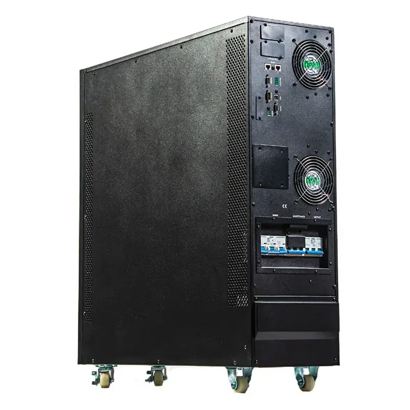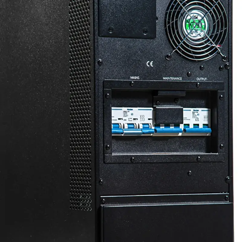 Источник обеспечивает безопасную и надёжную защиту оборудования от некачественной электросети, питая подключённые к его выходу устройства стабилизированным трёхфазным напряжением. При отсутствии напряжения сети ИБП использует электроэнергию, запасённую в аккумуляторных батареях.