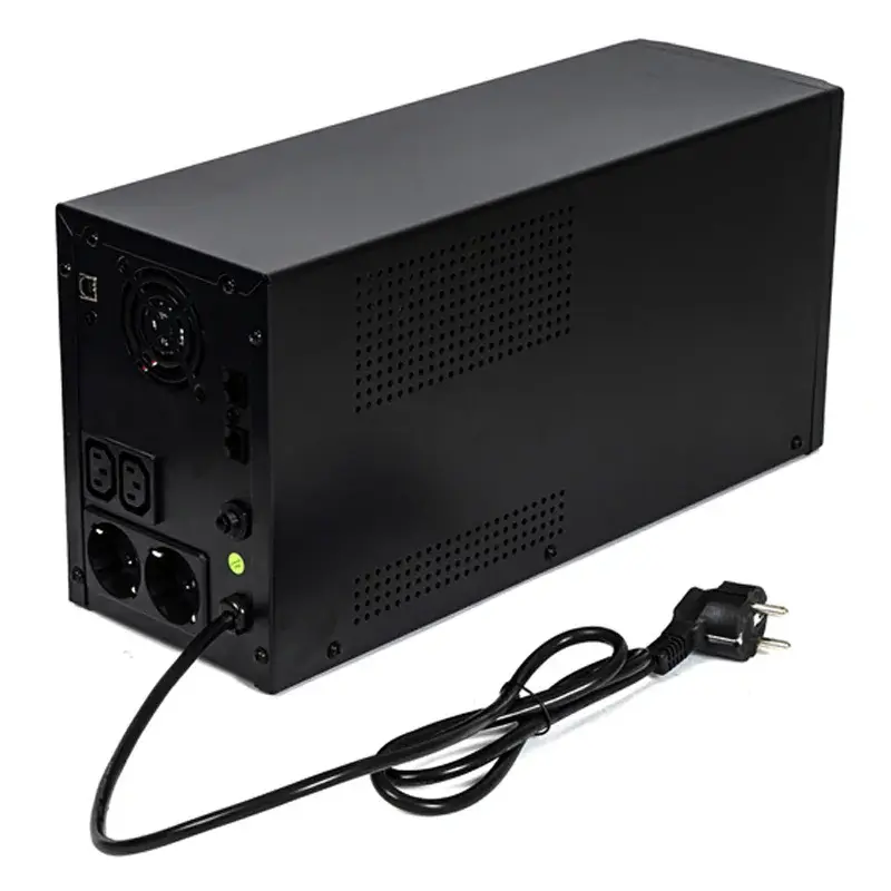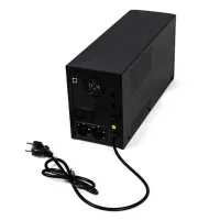 ИБП с аккумулятором оснащен ЖК-дисплеем, на котором отображаются значения уровней выходного и входного напряжения, заряда аккумуляторной батареи и нагрузки. Наглядные пиктограммы состояния устройства и его режимов работы обеспечивают удобство контроля. При переходе к питанию от батарей, неисправности или низком заряде раздаются звуковые сигналы. Если ИПБ, подключенный к электросети, выключить, устройство перейдет в режим ожидания, в котором будут заряжаться аккумуляторы. Время переключения на работу от батареи составляет 8–10 мс.