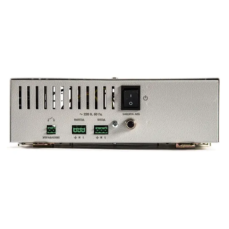 В ИБП без аккумулятора рекомендуется установить аккумуляторную батарею напряжением 12 В и емкостью 7 Ач, которая приобретается отдельно. Устройство автоматически переходит в автономный режим при отклонении параметров сетевого напряжения за допустимые пределы или при полном отключении электроснабжения. Светодиодные индикаторы оповещают о режимах работы и состоянии устройства: питание от сети, резерв и перегрев. В комплект поставки входят кабели для подсоединения к разъемам колодок управления, нагрузки и входного сетевого напряжения. Устройство рассчитано на круглосуточный режим работы. В экстренном случае ИБП можно оперативно отключить от электросети с помощью выключателя на корпусе.