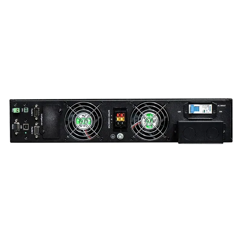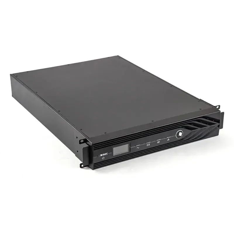 ИБП без аккумулятора в комплекте устанавливается в вертикальном положении на любую ровную поверхность или закрепляется горизонтально в стойке телекоммуникационного шкафа размером 19". Второй способ монтажа позволяет экономить пространство в помещении.