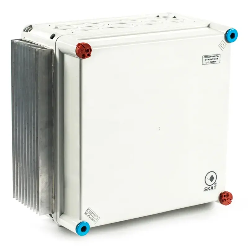 ОСОБЕННОСТИ SKAT-V.12DC-18 ИСП.5 питание нагрузок (две выходных клеммных колодки) стабилизированным напряжением постоянного тока при наличии напряжения в электрической сети, режим «ОСНОВНОЙ» согласно п.2 таблицы и суммарным током потребления по двум выходам, включая ток заряда АКБ, не более 18 А; заряд АКБ от питающей сети, напряжением 220 В, 50 Гц согласно п.1 таблицы напряжением заряда АКБ согласно п.3 таблицы (режим «ОСНОВНОЙ») и током заряда в соответствии с п.6 таблицы; ограничение тока заряда АКБ (п.6 таблицы) и возможность выбора одного из четырёх значений тока ограничения; температурную компенсацию напряжения заряда АКБ при наличии питающей сети в соответствии с п.4 таблицы (при применении термодатчика АКБ, поставляемого отдельно); автоматический переход в режим резервного питания нагрузок от внешней АКБ постоянным напряжением согласно п.2 таблицы и суммарным током потребления по двум выходам не более 20 А, при снижении напряжения электрической сети ниже значения, указанного в п.1 таблицы или при отключении электрической сети (режим «РЕЗЕРВ»); защита от короткого замыкания в нагрузке посредством плавкого предохранителя; защита устройства и нагрузки от неправильного подключения (переполюсовки) клемм АКБ; защита от короткого замыкания клемм АКБ; контроль наличия АКБ; защита АКБ от глубокого разряда в режиме «РЕЗЕРВ» путём отключения нагрузки от АКБ при снижении напряжения на клеммах АКБ до уровня, указанного в п.9 таблицы; защита нагрузки потребителя от аварийного повышения напряжения на выходе источника (п.12 таблицы) путём автоматического отключения нагрузок; светодиодная индикация наличия напряжения электрической сети: «СЕТЬ»; светодиодная индикация состояния внешней АКБ: «АКБ»; светодиодная индикация состояния напряжения выхода: «ВЫХОД»; возможность подключения внешнего контакта (тумблера)«ВЫХОД» для оперативного включения/отключения нагрузок; выдача информационных диагностических сообщений (подключение внешних цепей индикации) и (или) управление внешними устройствами автоматики замыкающими контактами пяти реле сигнальных выходов; возможность параллельного подключения нескольких устройств к одной АКБ с целью увеличения тока заряда АКБ при необходимости подключения АКБ большей ёмкости, чем указано в п.15 таблицы; с управлением термокомпенсацией от одного ведущего устройства; защита питающей сети от короткого замыкания в источнике посредством плавкого предохранителя; возможность восстановления работоспособности источника при подключении исправной и заряженной внешней АКБ и отсутствии напряжения питающей сети («холодный запуск»); полную пыле- влаго- защиту при неблагоприятных условиях эксплуатации.
