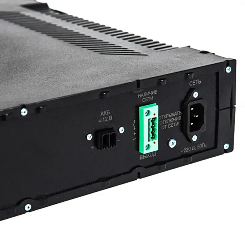 - световая индикация режима работы источника светодиодными индикаторами «СЕТЬ», АКБ», «ВЫХОД», «АВАРИЯ»;