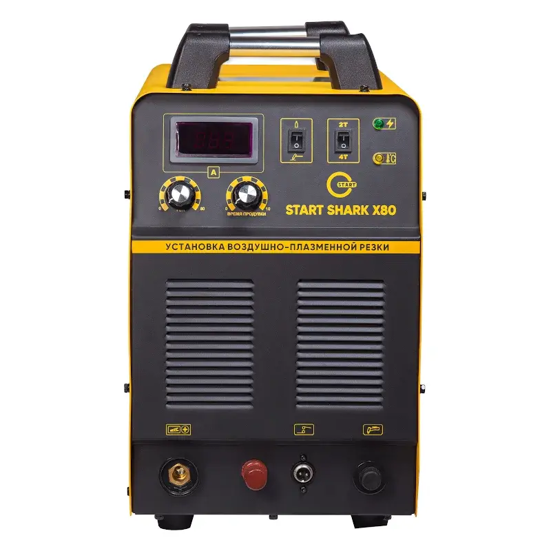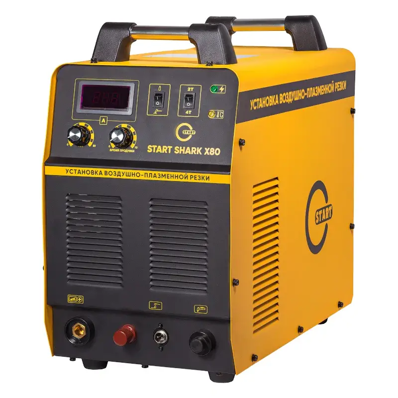Аппарат воздушно-плазменной резки START SHARK X80 отличается безотказной работой и низким уровнем шума в процессе резки. Благодаря применению инвертора продолжительность включения при максимальном токе достигает 60 %. Высокочастотный поджиг обеспечивает высокое качество реза и минимальное количество окалины. Плазмотрон оснащен специальным упором для стабильной резки. Он гарантирует постоянный зазор между соплом и заготовкой во избежание их соприкосновения и повреждения.