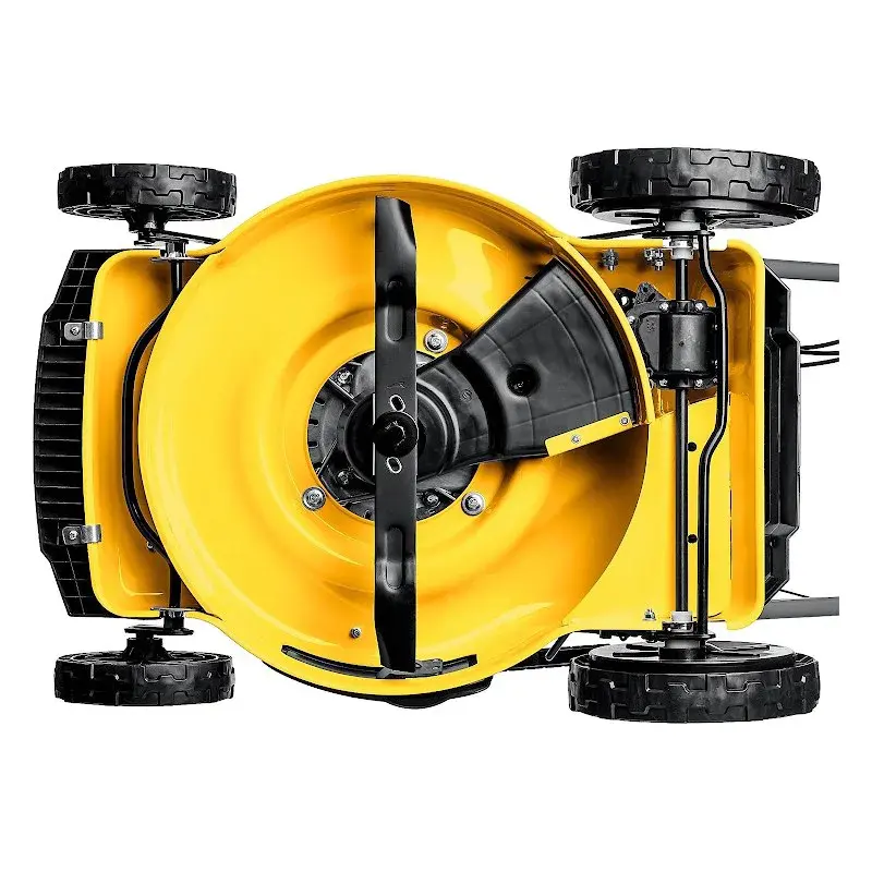 За счет самоходности а также колес с подшипниками, модель легко проходит по неровностям на участке. Скорость передвижения задается вручную, что позволяет подбирать комфортный темп работы.