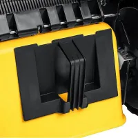 При сборе растительности в травосборник не придется часто его опустошать за счет большого объема. Для простого опорожнения контейнера на его крышке есть ручка для быстрого снятия верха.