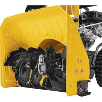 Желоб выброса снега легко поворачивать в нужную сторону с помощью длинной ручки. Угол наклона козырька дефлектора для изменения дальности выброса до 12 м легко регулируется вручную при помощи барашковых винтов.