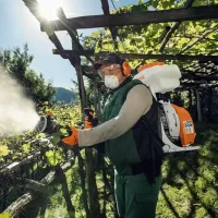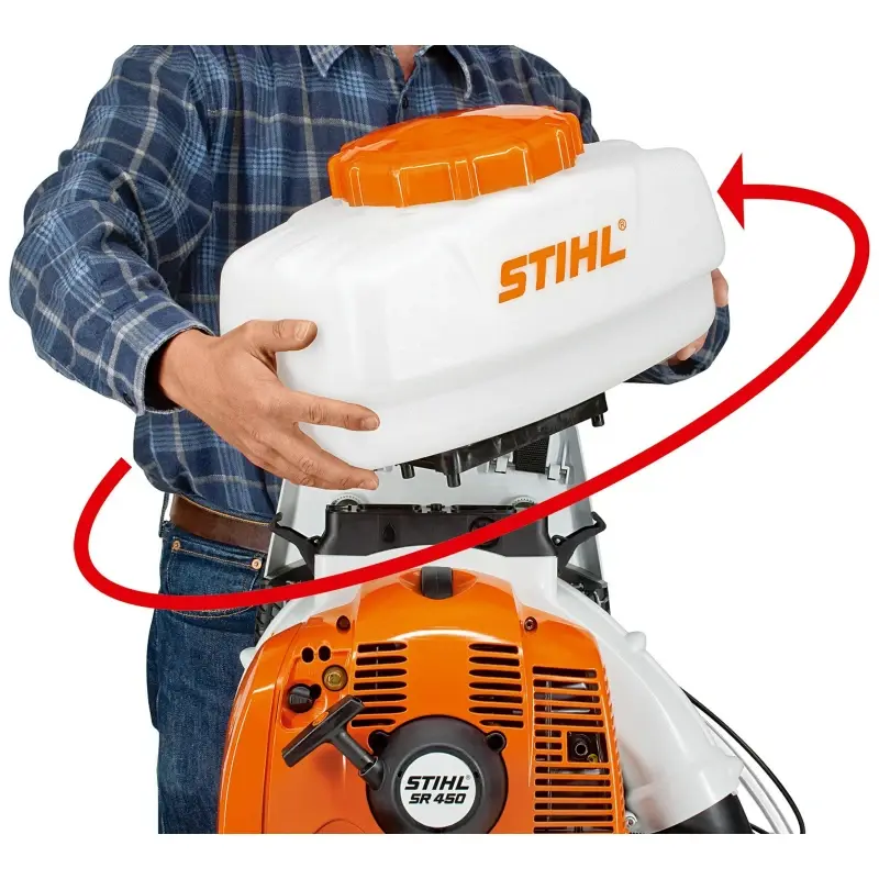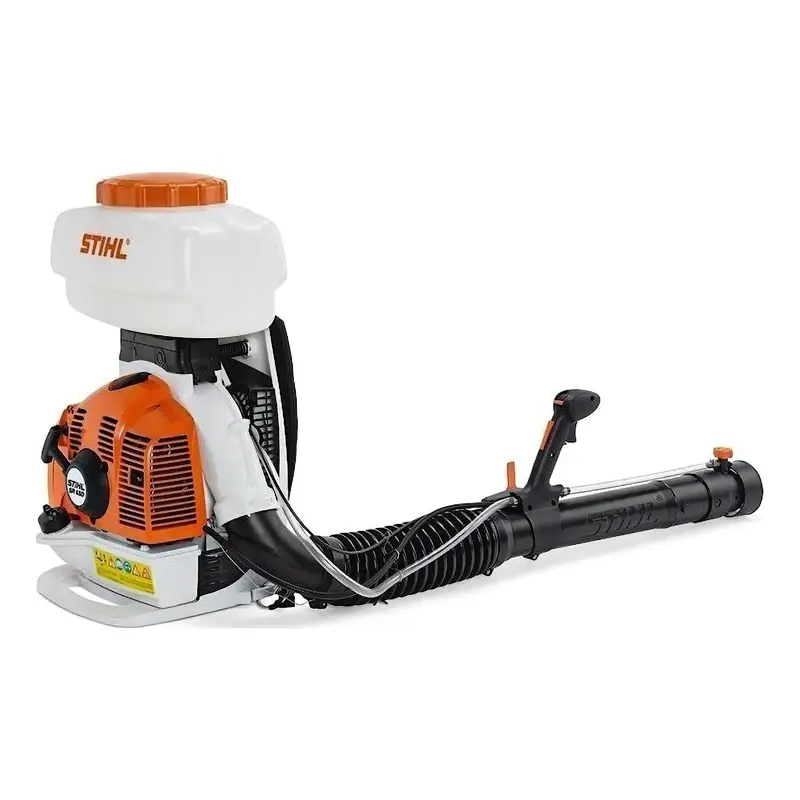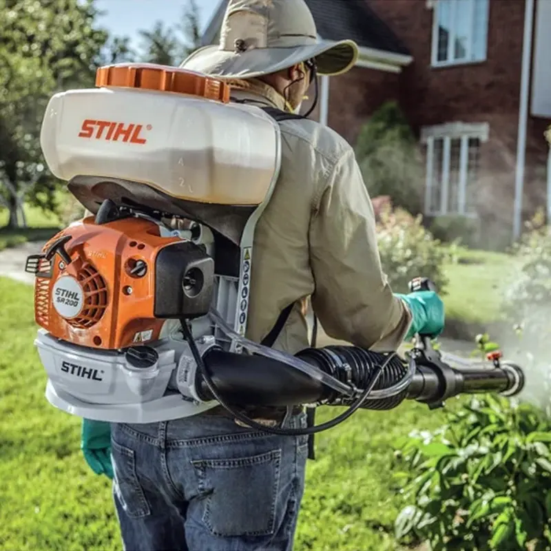 Бензиновый опрыскиватель Stihl SR 450 находит широкое применение в фермерском, коммунальном или приусадебном хозяйстве. Устройство используется для распыления жидкостей, порошка, семян. Дальность действия по горизонтали составляет 14,5 м. Двухтактный двигатель мощностью 3,9 л.с. обеспечивает высокую производительность, достигающую 1300 м3/ч. Для удобства переноски 14-литрового бака опрыскиватель оборудован ранцевой мягкой спинкой и двумя регулируемыми по длине лямками.