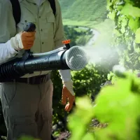 В широкую горловину бака удобно заливать жидкости или засыпать гранулы. Элементы управления двигателем и расходом химикатов удобно расположены на рукоятке под правой рукой. Регулятор на распылительной трубе позволяет контролировать и дозировать расход вещества. Сквозь прозрачные стенки бензобака удобно отслеживать уровень топливной смеси для выполнения своевременной заправки. Скорость воздушного потока достигает 90 м/с, что обеспечивает высокую производительность бензинового опрыскивателя Stihl. Три съемные решетки придают струе определенную форму: конусообразную, разделенную на две части или отклоненную в сторону.