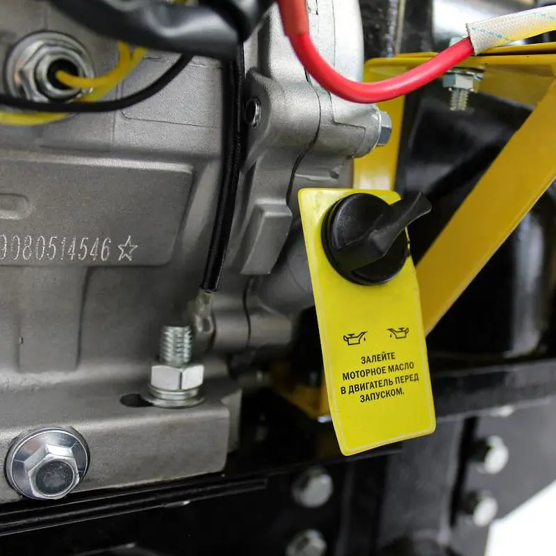 У модели присутствует система для контроля за уровнем масла в двигателе. Если количество смазочной жидкости упадет ниже требуемого, электроника автоматически заглушит мотор. Это положительно сказывается на сроке службы культиватора.