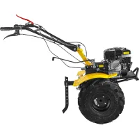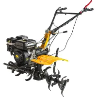 Бензиновый мотоблок предназначен для работы на дачных участках и небольших фермерских хозяйствах. Вы можете использовать его как культиватор для вспахивания или выравнивания почвы, или установить различные прицепные инструменты и расширить функционал машины. Например, для ухода за большими грядами пригодится плуг, сошник или окучник.