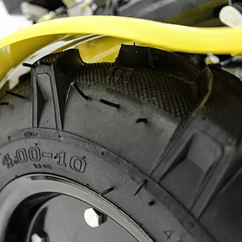 Культиватор Huter MK-9500P-10 имеет специальные щитки, которые препятствуют выбросу камней и земли вверх во время работы. Благодаря этому вы сможете использовать его даже в слякоть и после дождя.