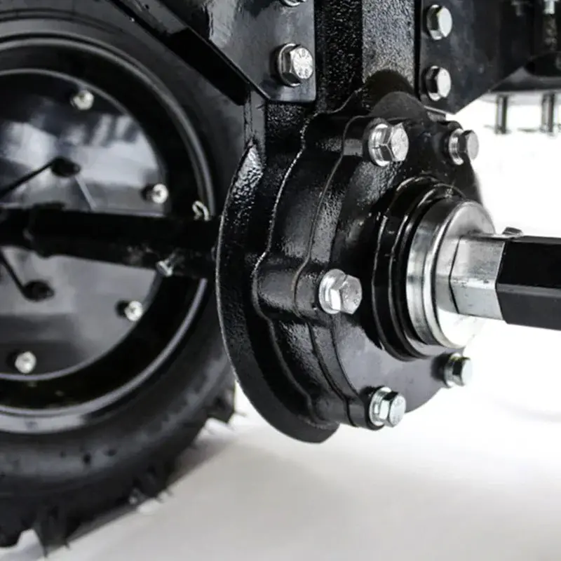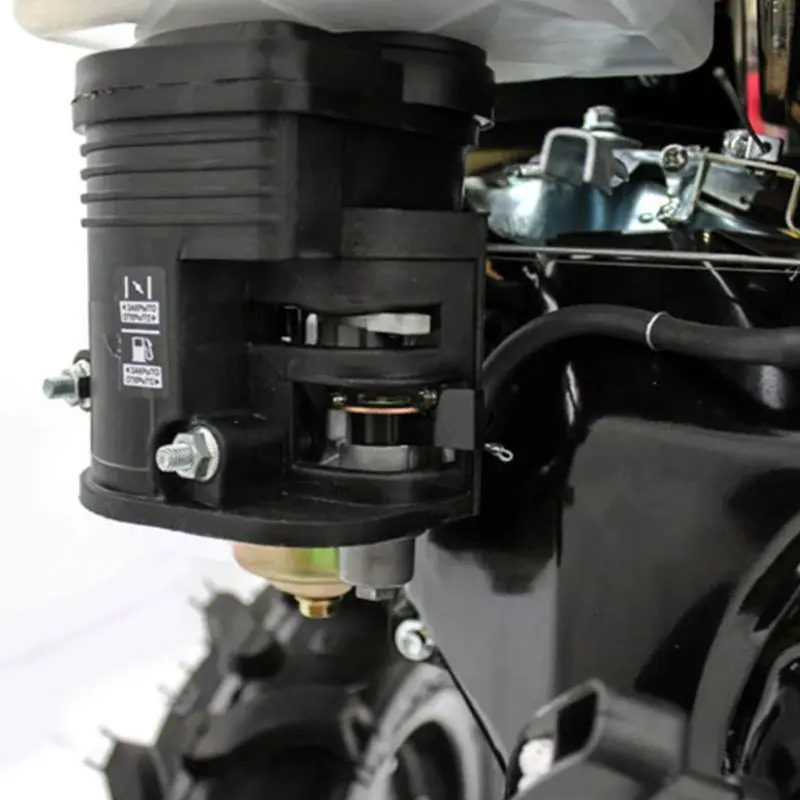 Шестеренчатый редуктор позволяет выбрать одну из 2-х скоростей движения вперед, либо включить реверс. Задний ход поможет при маневрировании, а также пригодится в случае, если бензиновый мотоблок застрял в обрабатываемой почве.