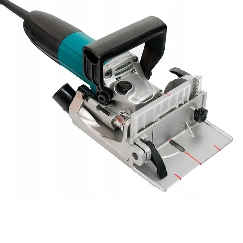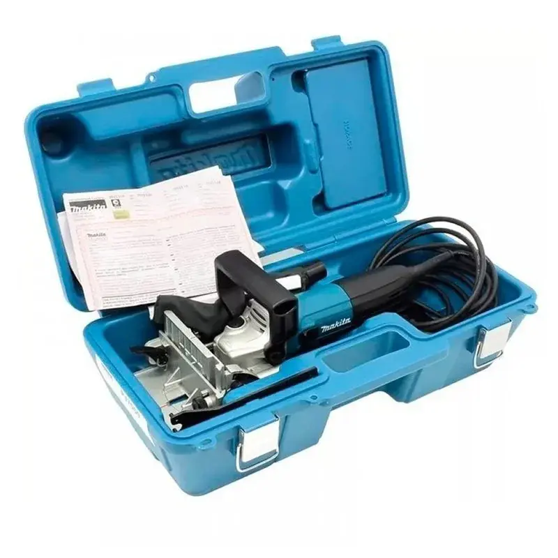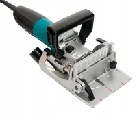 Шпоночный фрезер Makita PJ7000 позволяет настраивать глубину и угол обработки заготовки до значения в 20 мм. Инструмент поставляется с комплектом мешков для сбора пыли и защитным чехлом.