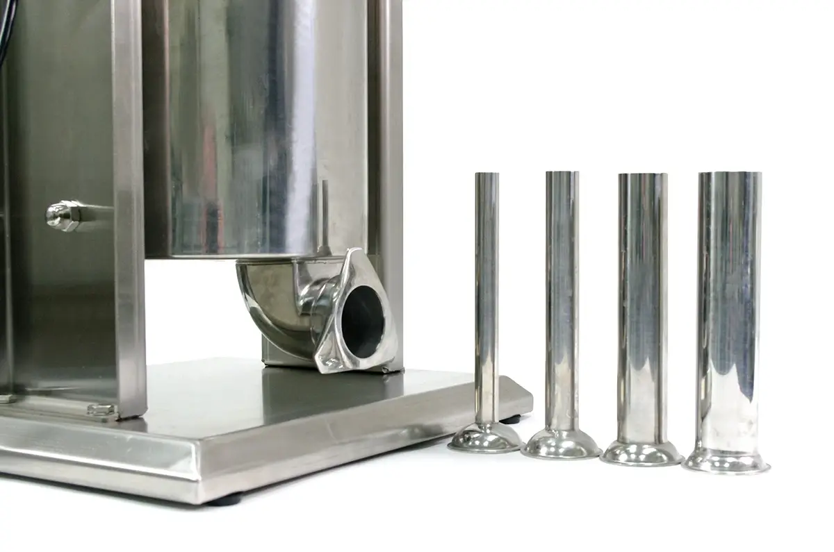 Четыре воронки-цевки из нержавеющей стали с входным диаметром 15, 22, 32, 38 мм и ножная педаль.