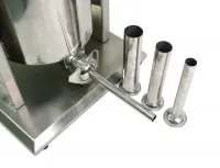Три воронки-цевки из нержавеющей стали с входным диаметром 22, 32, 38 мм и ножная педаль.