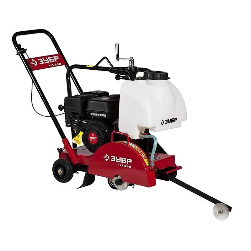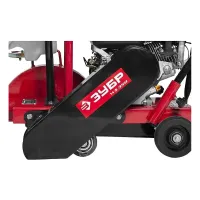 Швонарезчик бензиновый Профессионал ЗУБР ЗШБ-350 оснащен транспортировочными колесами и ручкой для комфортного перемещения с места на место. В аппарате предусмотрена регулировка глубины обработки, а также функция орошения.