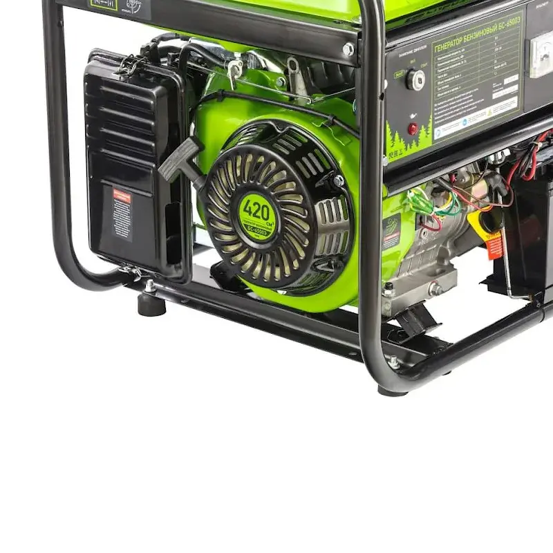 Бензиновый генератор Сибртех БС-6500Э используется для резервного энергоснабжения частного дома, дачи, мастерской или кемпинга. Передвижная электростанция позволит вам пользоваться электроинструментами, осветительными приборами, телевизором, электроплитой и другой техникой с максимальной суммарной мощностью 5,5 кВт даже при отсутствии напряжения в сети. Генератор снабжен двумя бытовыми розетками 230 В/16 А и одной силовой 230 В/32 А с крышками для защиты от влаги и пыли.