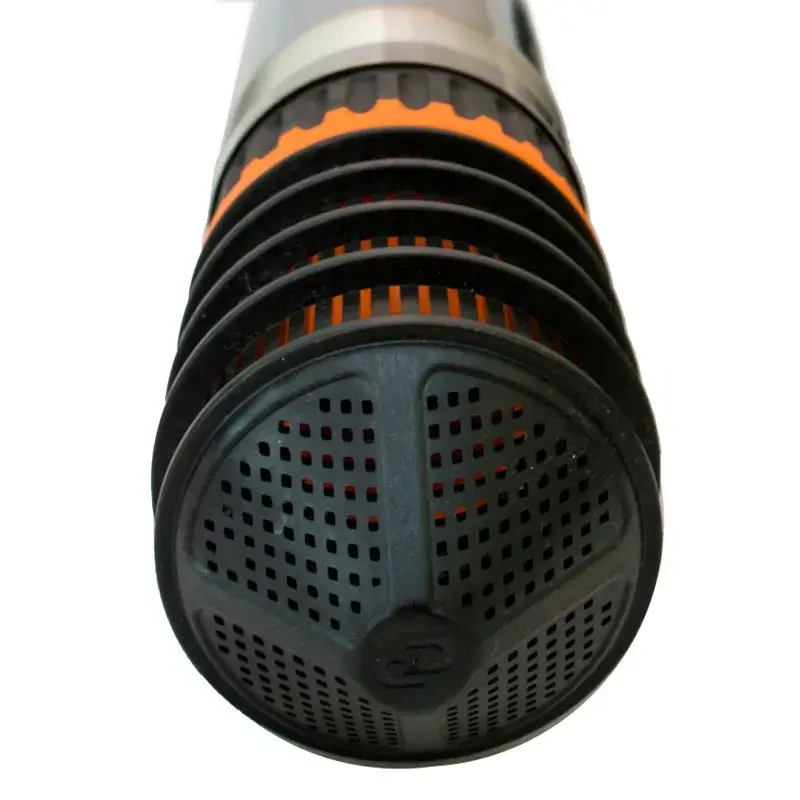 Диаметр корпуса насоса 98 мм. Это позволяет опускать его в скважины с внутренним диаметром обсадной трубы 110 мм. Максимальная глубина погружения под воду составляет 30 м. А для работы достаточно опустить корпус на 10-15 см под воду. Благодаря этому он подходит для эксплуатации в гидротехнических сооружениях с небольшим дебитом.