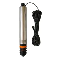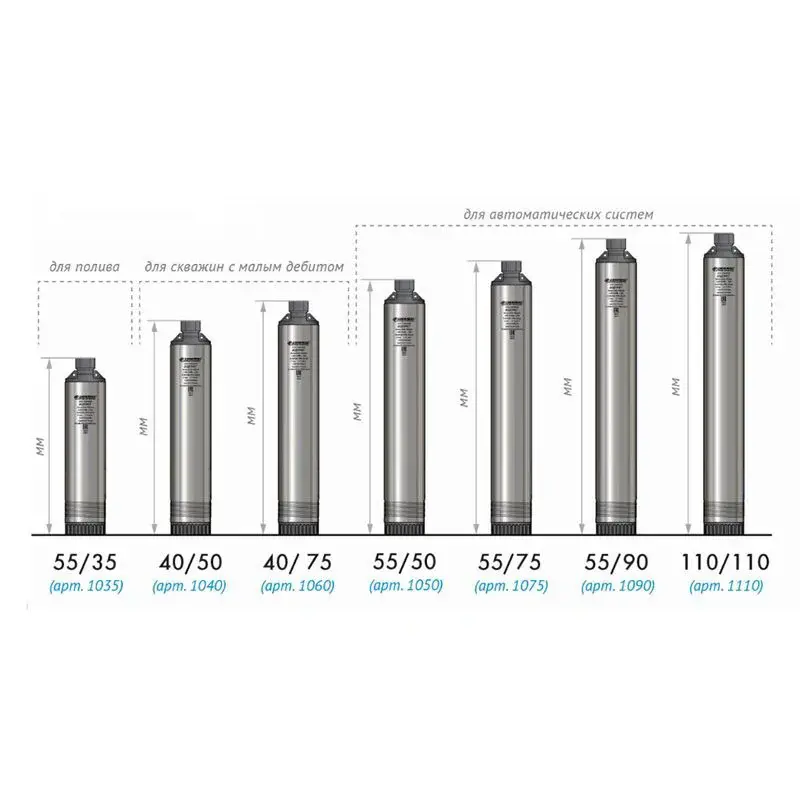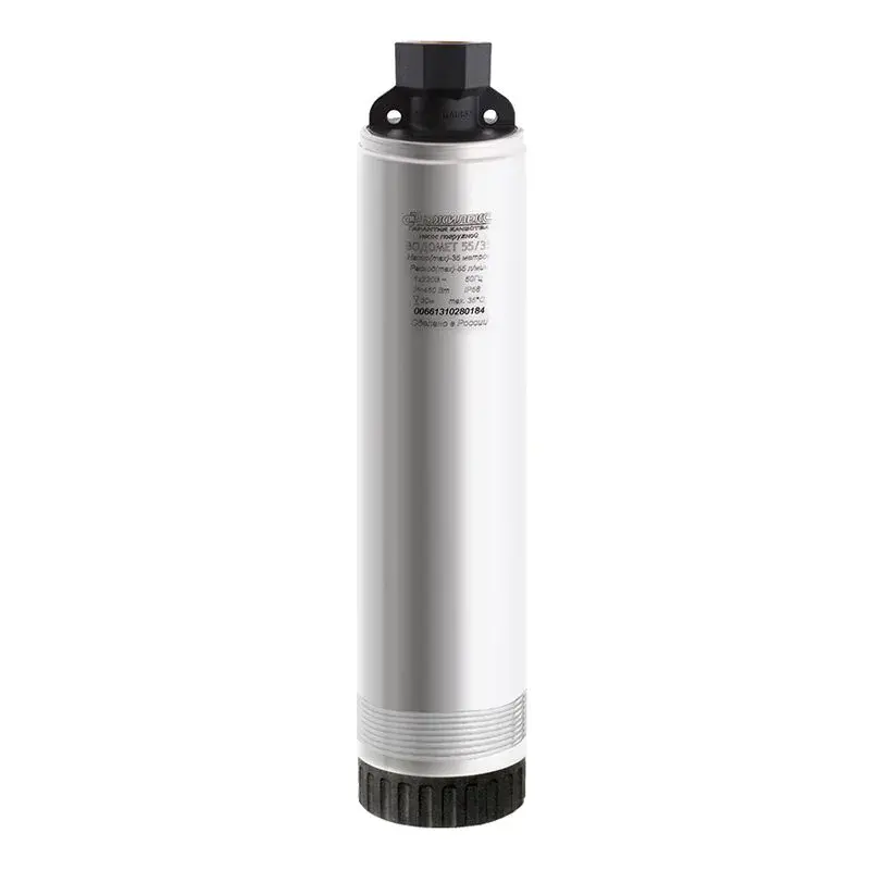 Насос Водомет погружается на глубину до 30 м, перекачивает воду с производительностью 55 л/мин и подает ее с напором в 90 м. Он может работать с глубокими скважинами, пробуренными в местности с глубоким залеганием водоносного горизонта.