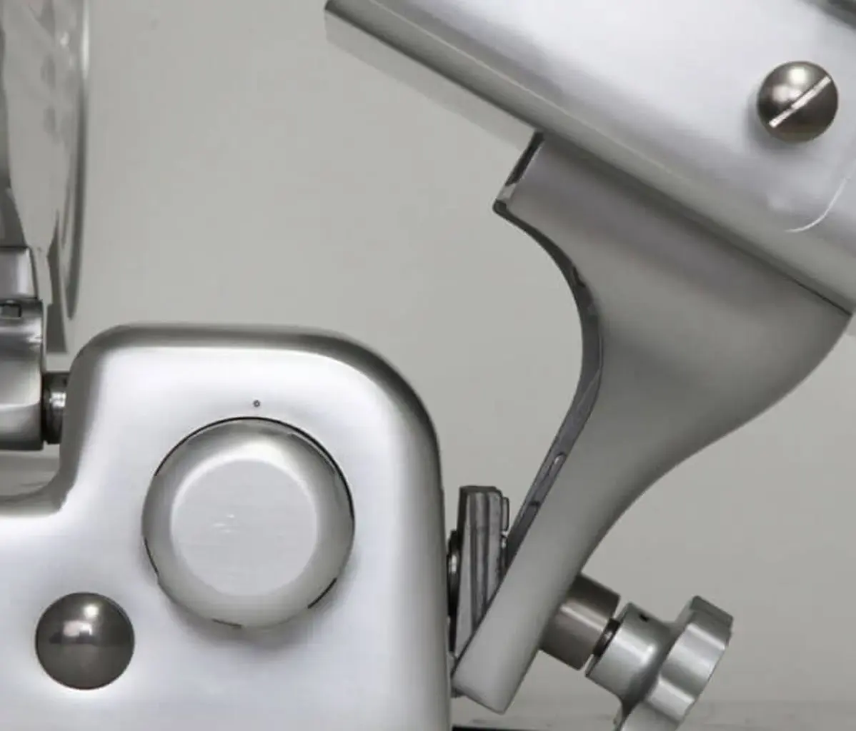 Крышка лезвия и поднос для еды из литого под давлением алюминия, защищенного анодным оксидированием.