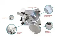 Слайсер оснащен водонепроницаемым шкивом, что позволяет защитить подшипники шкивов от попадания жидкости.