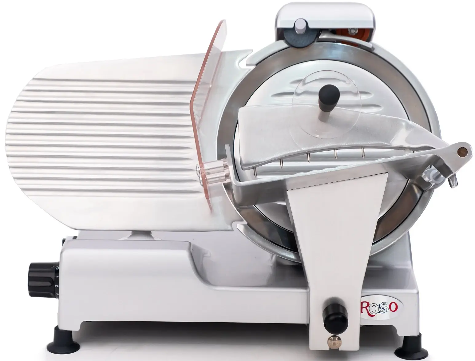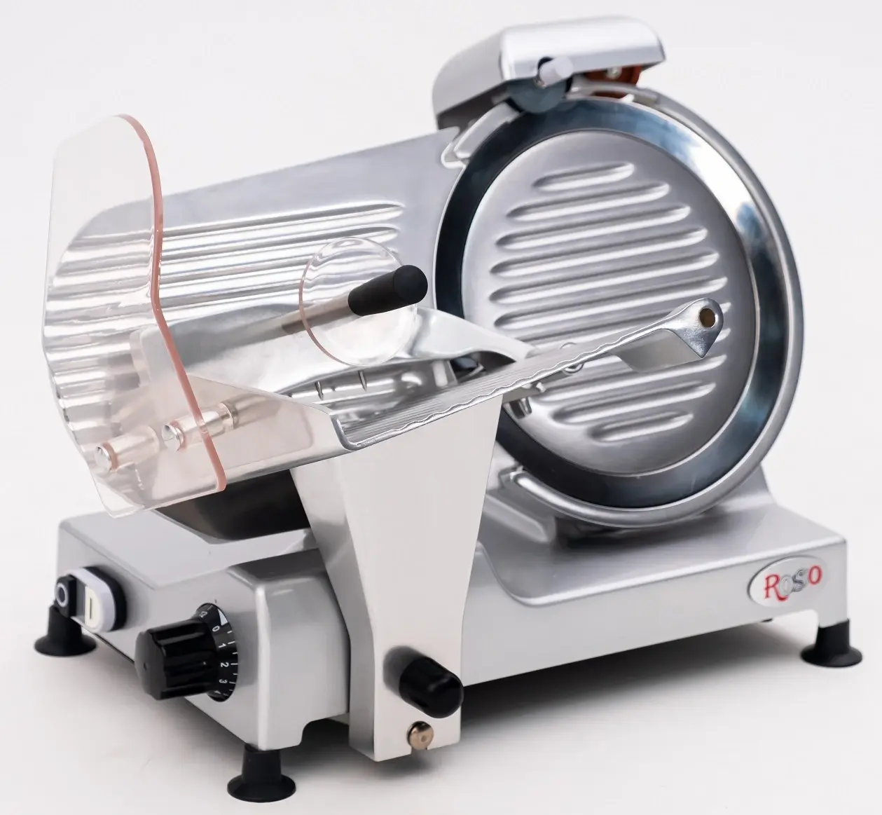 Слайсер Rosso 220ES-8 предназначен для нарезки мяса, сыра, колбасных изделий и других продуктов питания на ровные и равные ломтики на предприятиях общественного питания и торговли. Модель оснащена прижимным устройством, защитным кожухом и литым основанием.