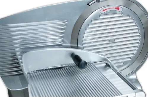 Для безопасного использования слайсера дисковый нож помещен в защитный кожух.