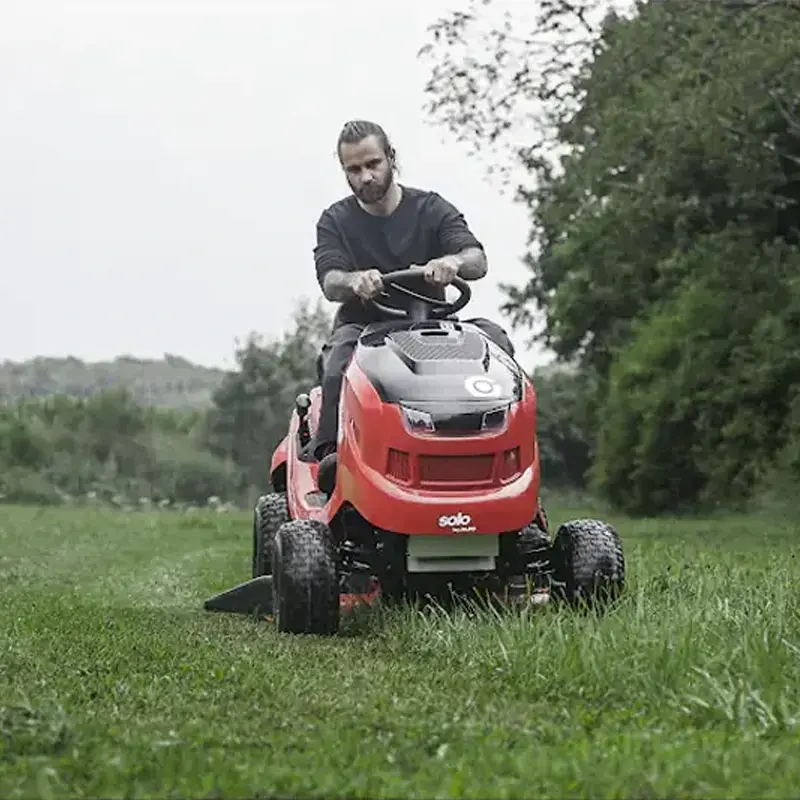 Solo by AL-KO T 15-93.9 HDS-A - это производительный газонный трактор, который позволит вам эффективно, а самое главное – удобно косить траву на больших площадях. Высоту реза можно отрегулировать специальной ручкой в 6 ступеней и в диапазоне от 30 мм до 80 мм. Скошенная трава удаляется из газонного трактора путем бокового выброса. Долговечная стальная косильная дека на шарикоподшипниках оснащена двумя ножами для чистого реза травы, и ее можно очень просто демонтировать за пару простых операций. Большие шины до 18 дюймов гарантируют хорошее сцепление с грунтом и быстрое продвижение вперед по любой местности.