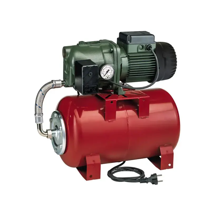 Насосная станция с гидроаккумулятором Dab AquaJet 102 M с встроенной защитой от перегрузки предназначена для повышения давления в водопроводных системах загородных домов. Имеет чугунный корпус насоса. Бак объемом 20 литров выполнен из оцинкованной стали. В его конструкции предусмотрены опорные ножки для прочной установки.