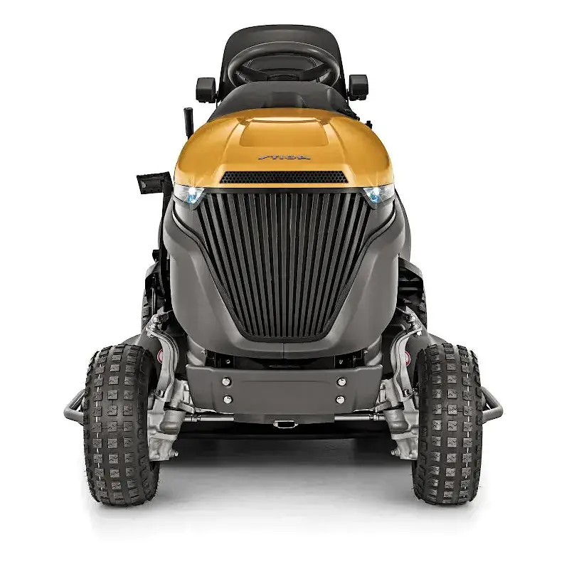 Качество этой машины также подчеркивают такие характеристики как чугунная передняя ось, предназначенная для частой работы в тяжелых условиях на пересеченной местности; прочный бампер для защиты передней части трактора от случайных ударов, а также новый капот, который улучшает охлаждение двигателя, что, в свою очередь, увеличивает выходную мощность. Комплект для мульчирования, прицепное устройство и зарядное устройство продаются отдельно.