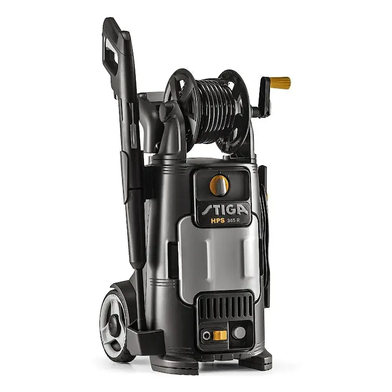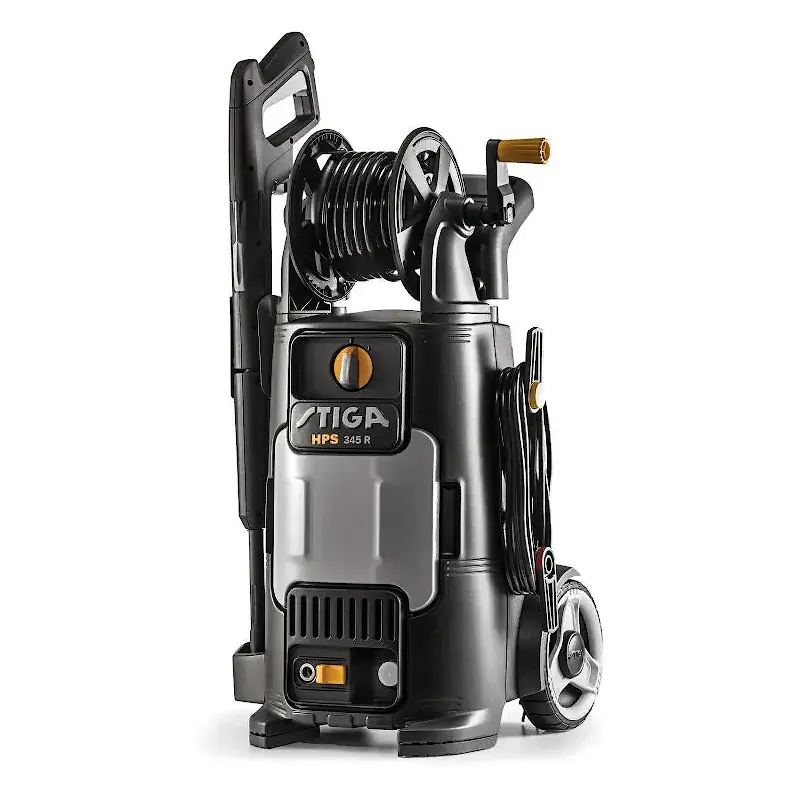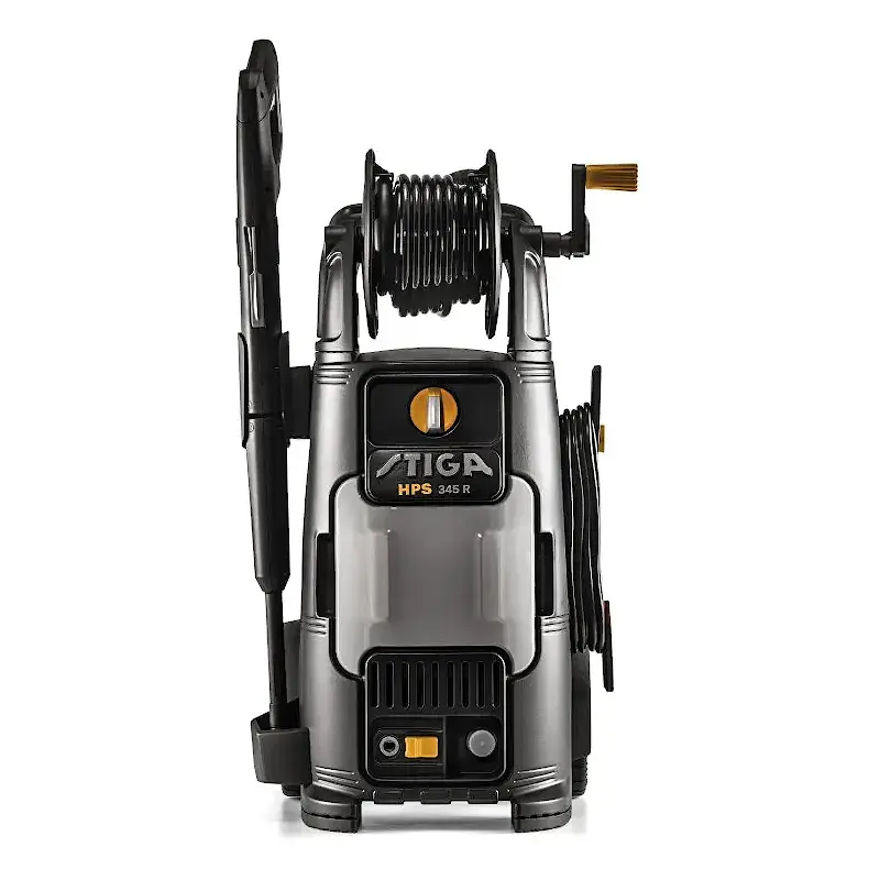 Мойка высокого давления Stiga HPS 345 R формирует водяную струю с давлением 145 бар, работает с производительностью 450 л/мин, что позволяет очищать транспорт, ограждения, садовые дорожки, лестницы и т.д. За счет больших прорезиненных колес ее удобно перемещать по участку.