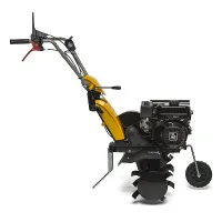 Этот роторный культиватор оснащен четырехтактным двигателем объемом 182 куб. см мощностью 3,1 кВт с искровым зажиганием. Он использует шесть роторов (по три с каждой стороны) с рабочей шириной 75 см и рабочей глубиной 26 см.
