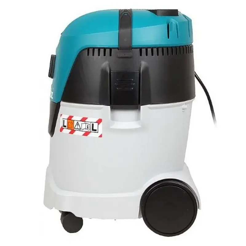 В корпус встроена розетка, к которой вы можете подключить электроинструмент мощностью до 2,6 кВт. Запуск пылесоса происходит синхронно с подключенной к нему дрелью, пилой, лобзиком или другим сетевым инструментом. Это повышает эффективность уборки стружек, опилок и пыли напрямую из рабочей зоны приборов. Пылесос Makita VC2512L сертифицирован для уборки пыли класса L, которая образуется при обработке мягкой древесины, искусственного камня, извести, гипса, мела, глины, краски и других подобных материалов.