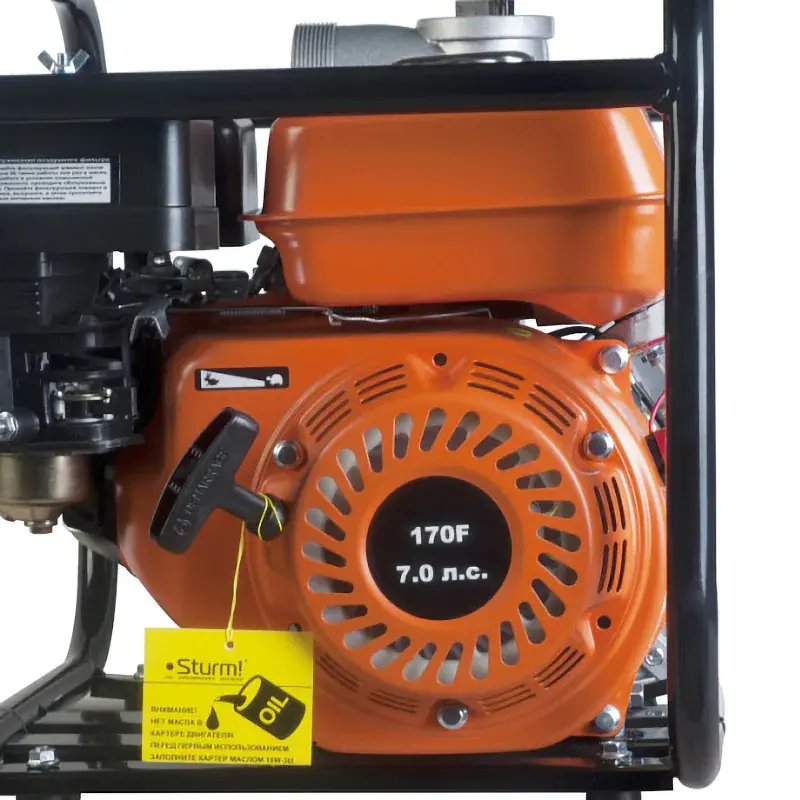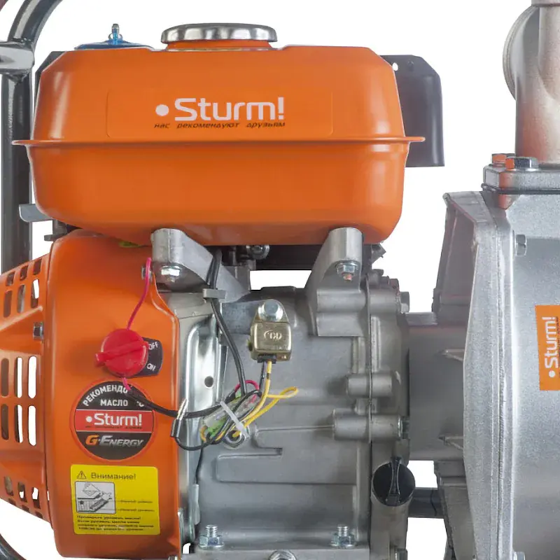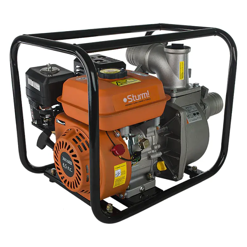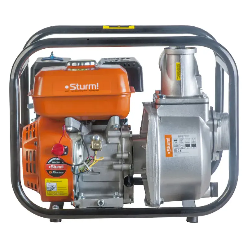 Мотопомпа Sturm! BP87101 – высокопроизводительная универсальная бензиновая мотопомпа для домашнего, жилищно-коммунального или строительного применения. Имеет классическую компоновку: двигатель и насос смонтированы внутри прочной усиленной трубчатой рамы, страхующей основные узлы от случайных повреждений, при транспортировке.