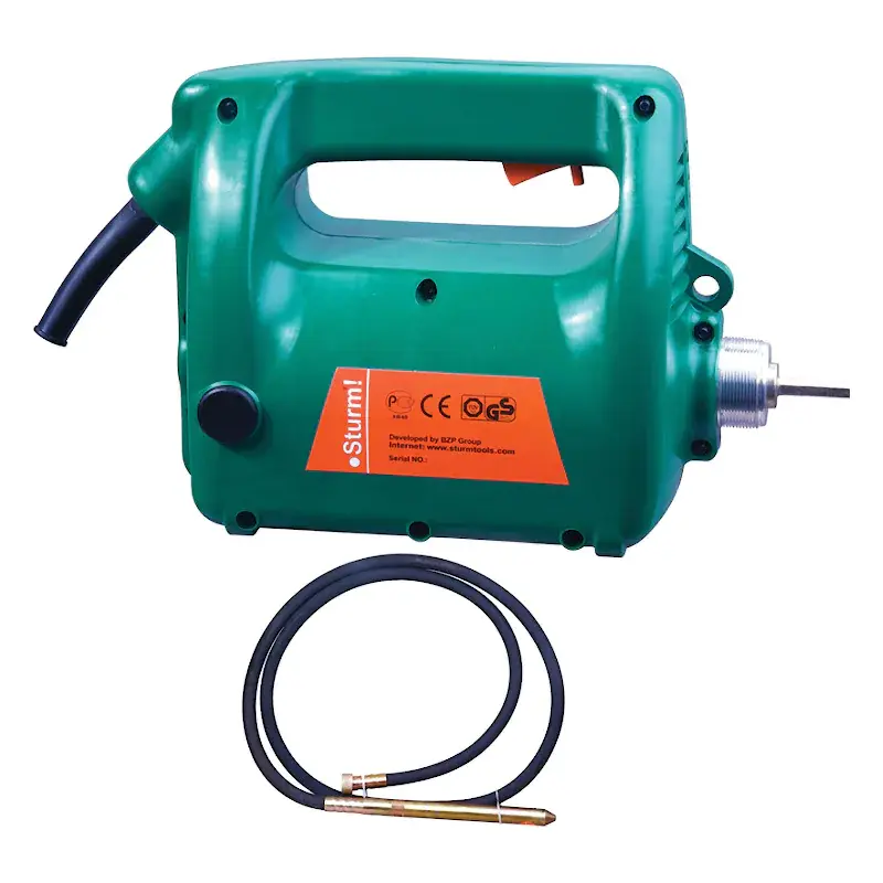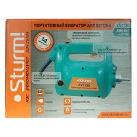 Портативный вибратор для бетона Sturm CV7120 оснащен электродвигателем мощностью 2000 Вт, имеет гибкий вал длиной 4 м и обладает частотой вибраций 3600 виб/мин.