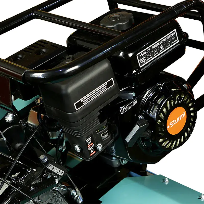 Мотоблок бензиновый Sturm! GK847CI19 — 3-х скоростная модель (понижающая, основная и повышающая) с чугунным редуктором и формованными крыльями, на внушительных колесах 19*7-8. Удобный руль с регулировкой вверх-вниз/влево-вправо.