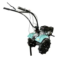 Полноценная плавная коробка передач без двойных выжимов. Рукоятка переключения передач имеет удобную форму и расположена таким образом, что передачи можно переключать ногой, как на мотоцикле, что особенно комфортно, когда мотоблок используется для езды с телегой.