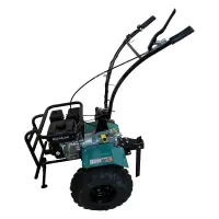 Полноценная плавная коробка передач без двойных выжимов. Рукоятка переключения передач имеет удобную форму и расположена таким образом, что передачи можно переключать ногой, как на мотоцикле, что особенно комфортно, когда мотоблок используется для езды с телегой.