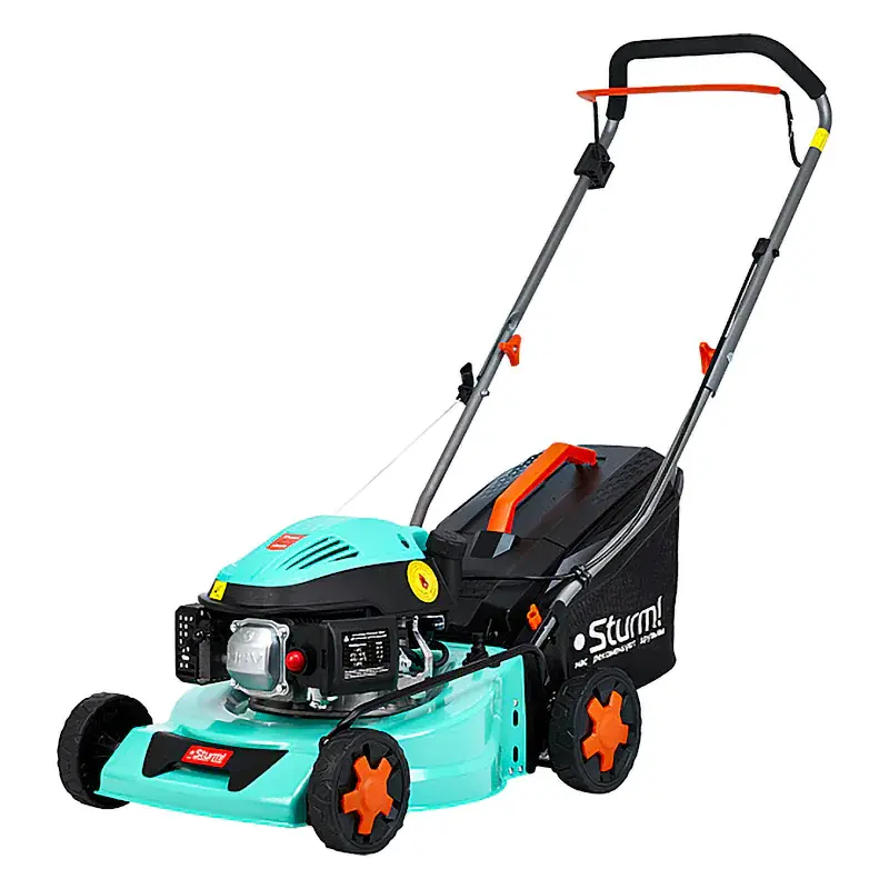 Бензиновая газонокосилка Sturm! PL4210 оборудована четырехтактным двигателем мощностью 3 л.с. с ручным стартером и системой легкого пуска. Благодаря экономному расходу топлива одной заправки бака хватает на 2 ч работы. Оптимальная площадь обработки составляет 1000 м2. Высота среза травы настраивается в диапазоне от 20 до 70 мм при помощи одного рычага. Косилка оснащена комбинированным травосборником объемом 35 л и штуцером для подключения водяного шланга.
