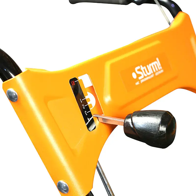 Зазубренный шнек первой ступени успешно измельчает слежавшийся снег и может справиться даже с настом толщиной до 2 см. Высокооборотистая вторая ступень снегоуборочного агрегата отбрасывает снег на расстояние до 11 м.