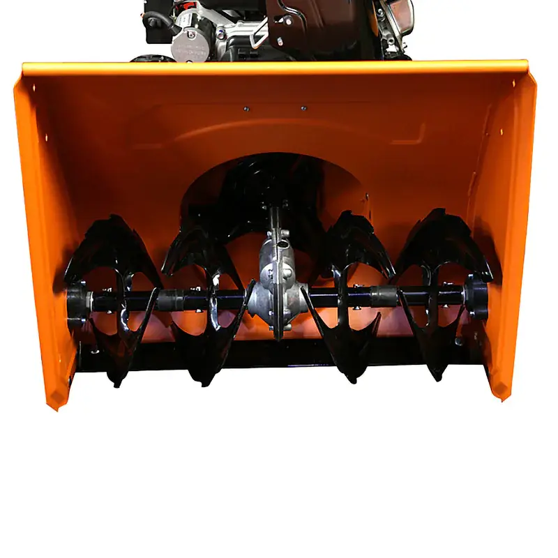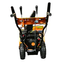Зазубренный шнек первой ступени успешно измельчает слежавшийся снег и может справиться даже с настом толщиной до 2 см. Высокооборотистая вторая ступень снегоуборочного агрегата отбрасывает снег на расстояние до 11 м.