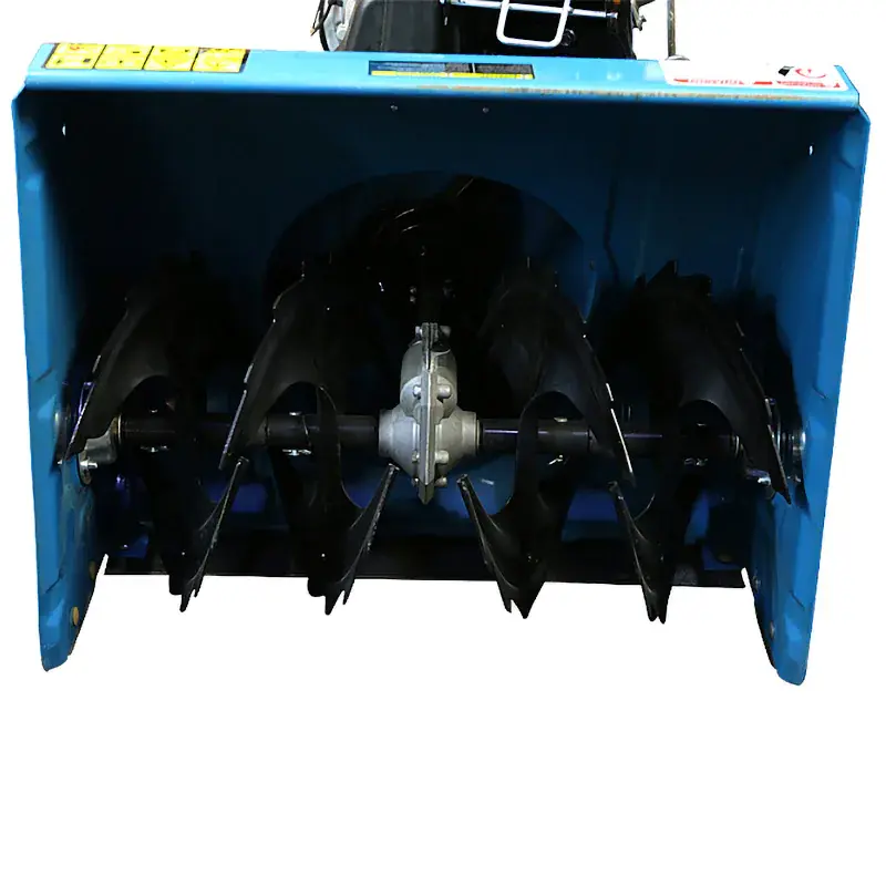 Зазубренный шнек первой ступени успешно измельчает слежавшийся снег и может справиться даже с настом толщиной до 2 см. Высокооборотистая вторая ступень снегоуборочного агрегата отбрасывает снег на расстояние до 12 м.