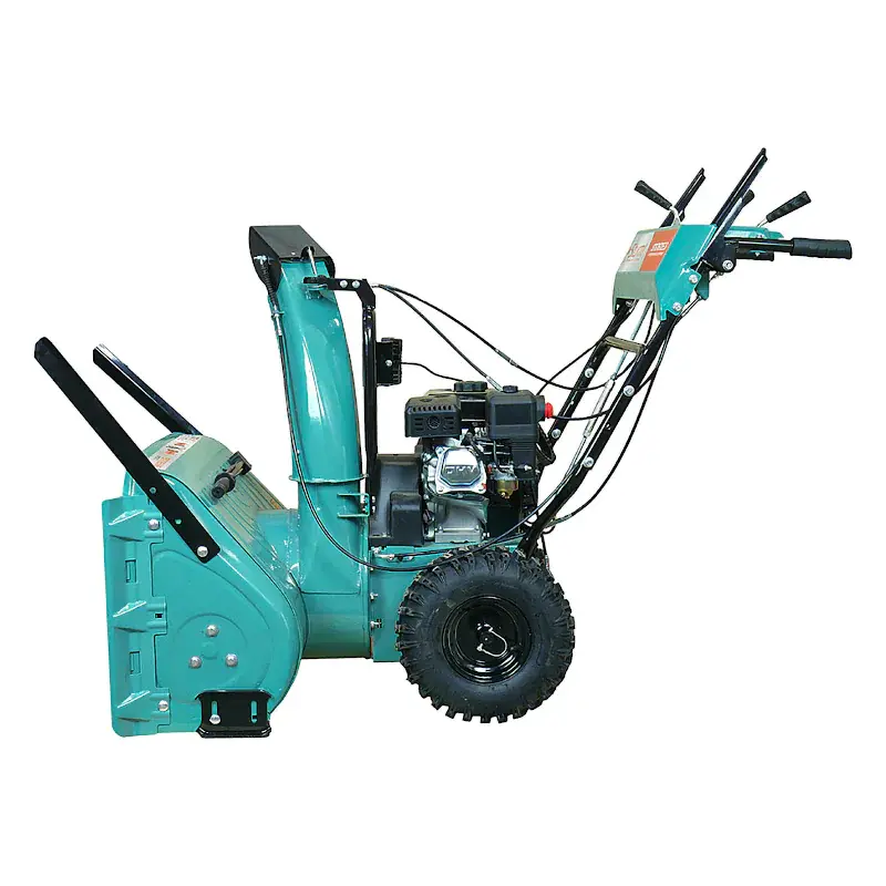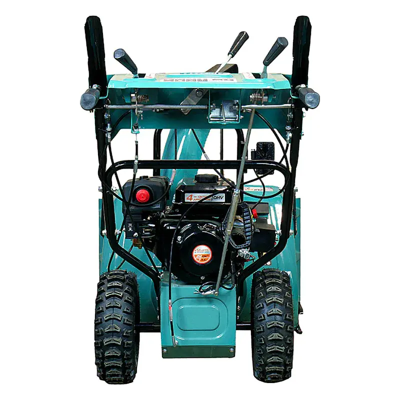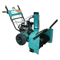 Широкие колеса с развитым анти-снежным протектором позволяют уверенно двигаться по рыхлому снегу. Широкий набор скоростей: 6 вперед и 2 назад для настройки оптимальной скорости движения снегоуборщика.
