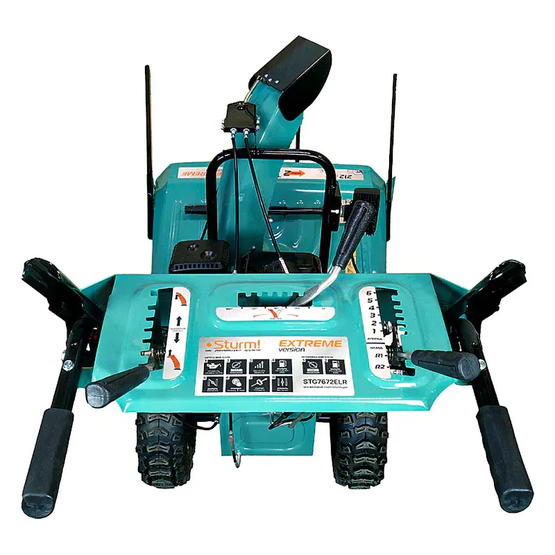 Бензиновый снегоуборщик Sturm! STG7672ELR - это самоходный снегоуборщик, оснащенная зимним вариантом надежного четырехтактного бензинового двигателя модели 170F. Система управления двигателем обеспечивает его работу в оптимальном диапазоне максимального крутящего момента, что даёт хорошую энерговооружённость для выполнения тяжёлых работ.